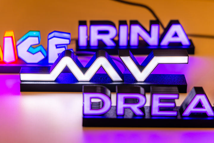 WIFI control using the WLED application or a simple button at the base of the letters. To control the button, you can assign your favorite presets.